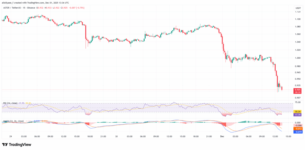 Chart 1: ASTER M15 chart, published on TradingView, December 1st, 2025.