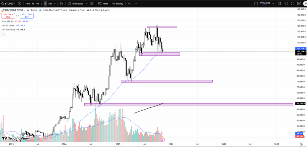 The death cross on Bitcoin is confirmed as it remains in a downtrend, poking support from above and attempting to break it on the weekly timeframe. The next support level would be $75K, with deeper corrections possible at $55K—notably, the 200-week moving average (WMA 200) is also near $55K flaunting confluence. It is just a possibility and it is not a confirmation.