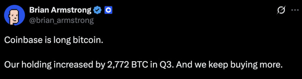 Coinbase Boosts Bitcoin Holdings to 14,548 BTC as Q3 Profits Surge