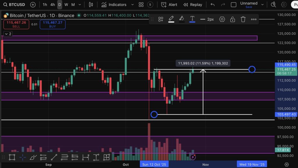 Gold recently fell below $4000 down !0% from ATH hinting a shift in investor sentiment. While, Gold fell Bitcoin with other crypto currencies saw massive gains of more than 11% across the board.