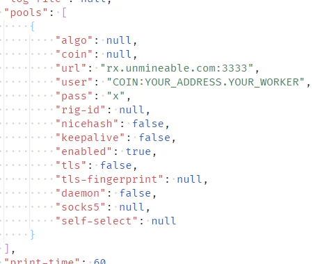 - Edit XMRig config to include wallet and pool.