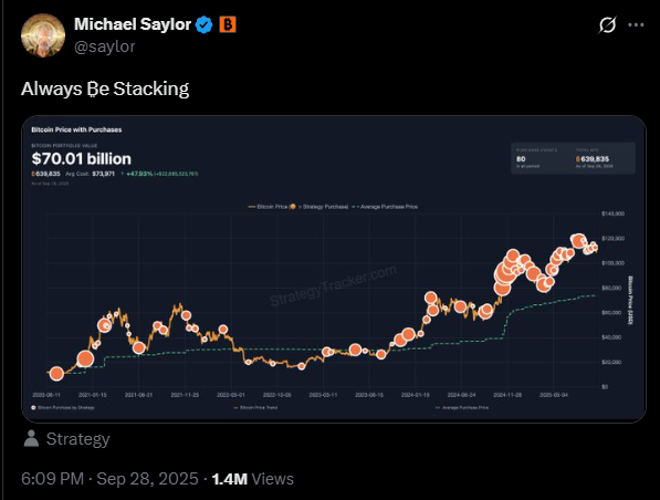 - Bitcoin holdings: ~640,031 BTC (worth about $73B)