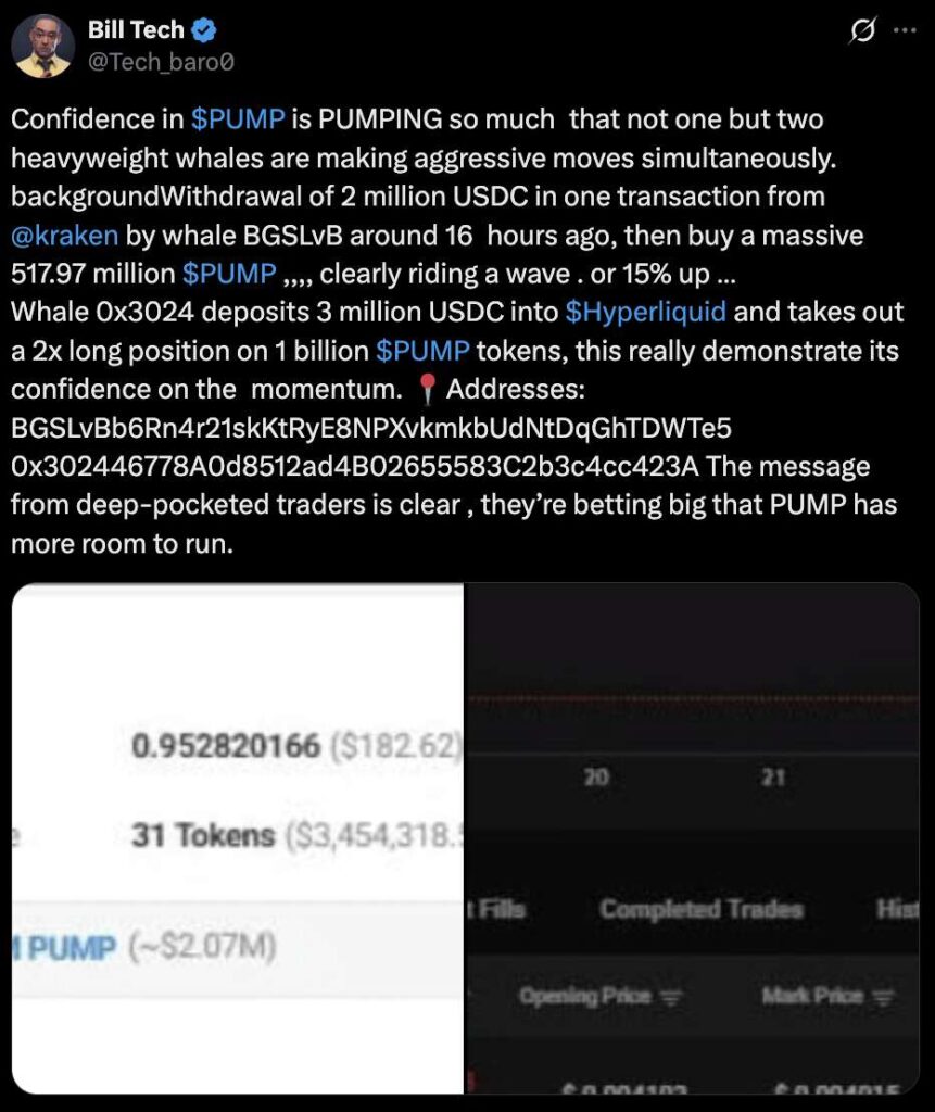 Technical analysis indicated that the token faced pressure near recent range lows and needed to break out of a bearish formation to avoid further decline. The recent price rally successfully broke this structure, creating momentum aimed at testing range highs. If sustained, the next significant target for $PUMP is around $0.005, an important support and resistance level established during Q3 rallies but lost during the October 10 pullback.