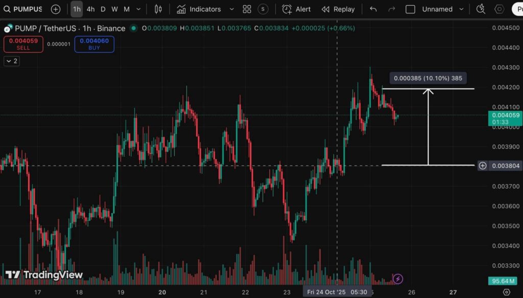 The $PUMP surge gained significant attention recently as the token jumped 11.6% to a one-week high of $0.0043. This marked a reversal within the established $0.0036–$0.0046 range after early October corrections.