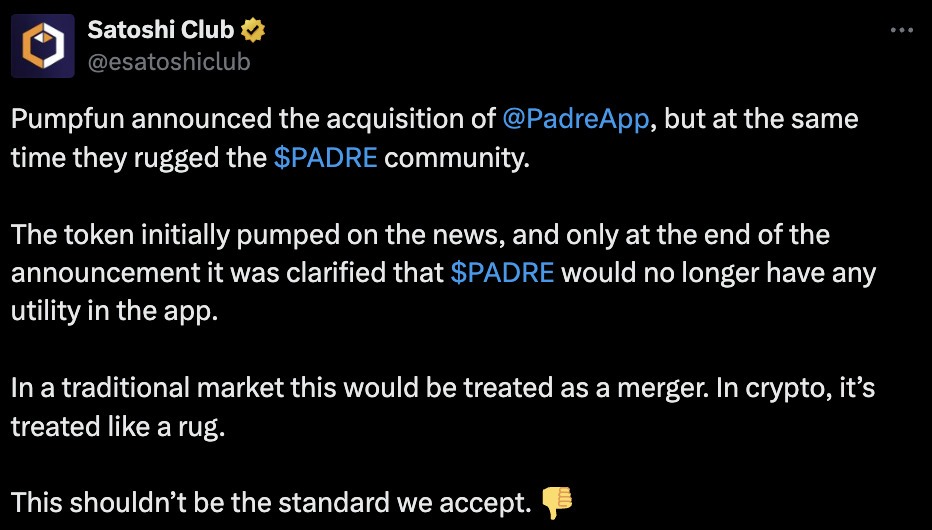 Pump.fun aims to integrate the strengths of Padre with its existing launchpad, expanding its user base and enhancing token utility. Its leadership emphasized continued ecosystem development and user incentives to maintain momentum.