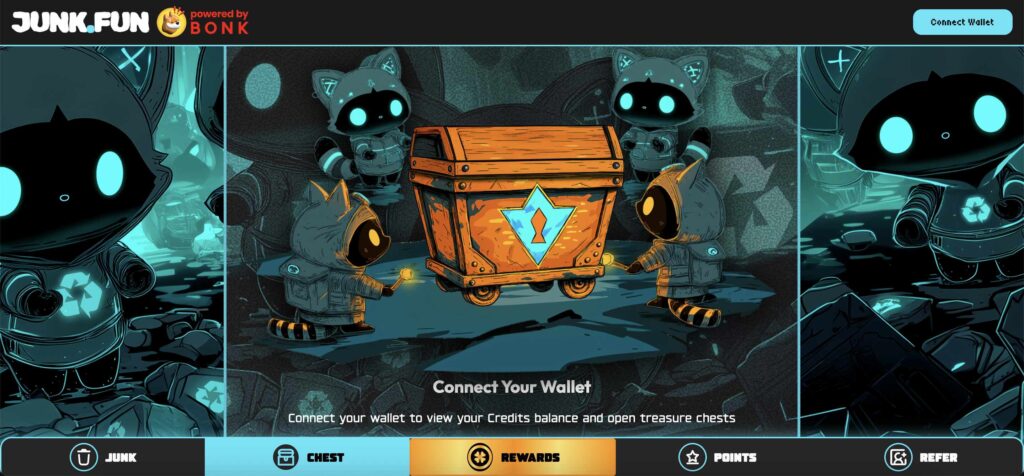 Junk.Fun’s mission is simple: to bring purpose and excitement to the countless memecoins that have lost liquidity or community momentum. By “junking” their dead tokens, users can open chests containing points, which they can use to enter raffles, prize draws, and $SOL reward pools.