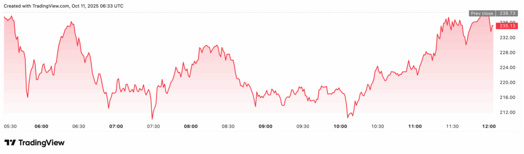 As of October 11, 2025, ZCash (ZEC) is trading at approximately $235.10 USD, with a 24-hour price change of 3.2 percent. The coin remains highly active in the market, supported by a daily trading volume exceeding $1.6 billion and a market cap of around $3.55 billion.